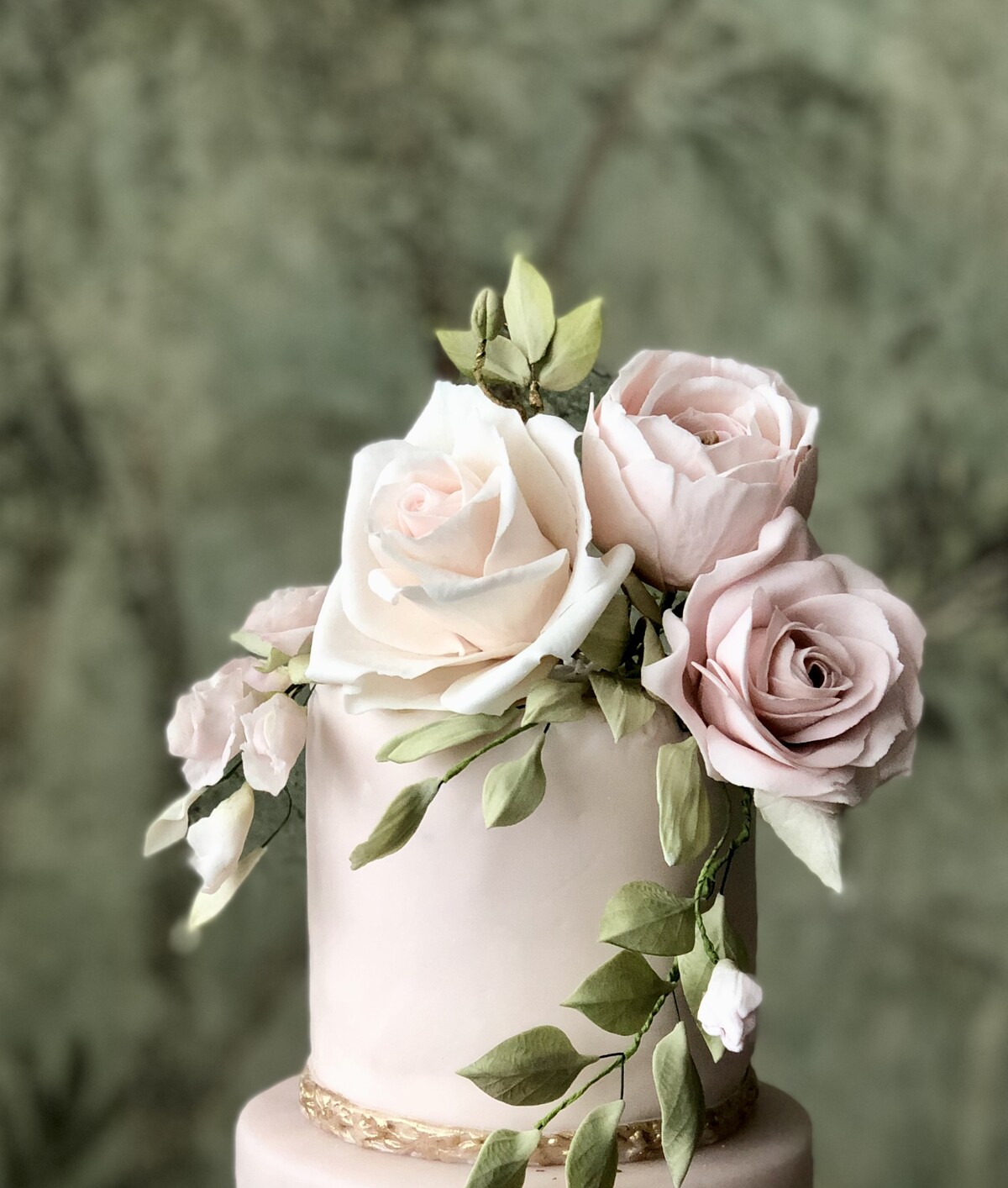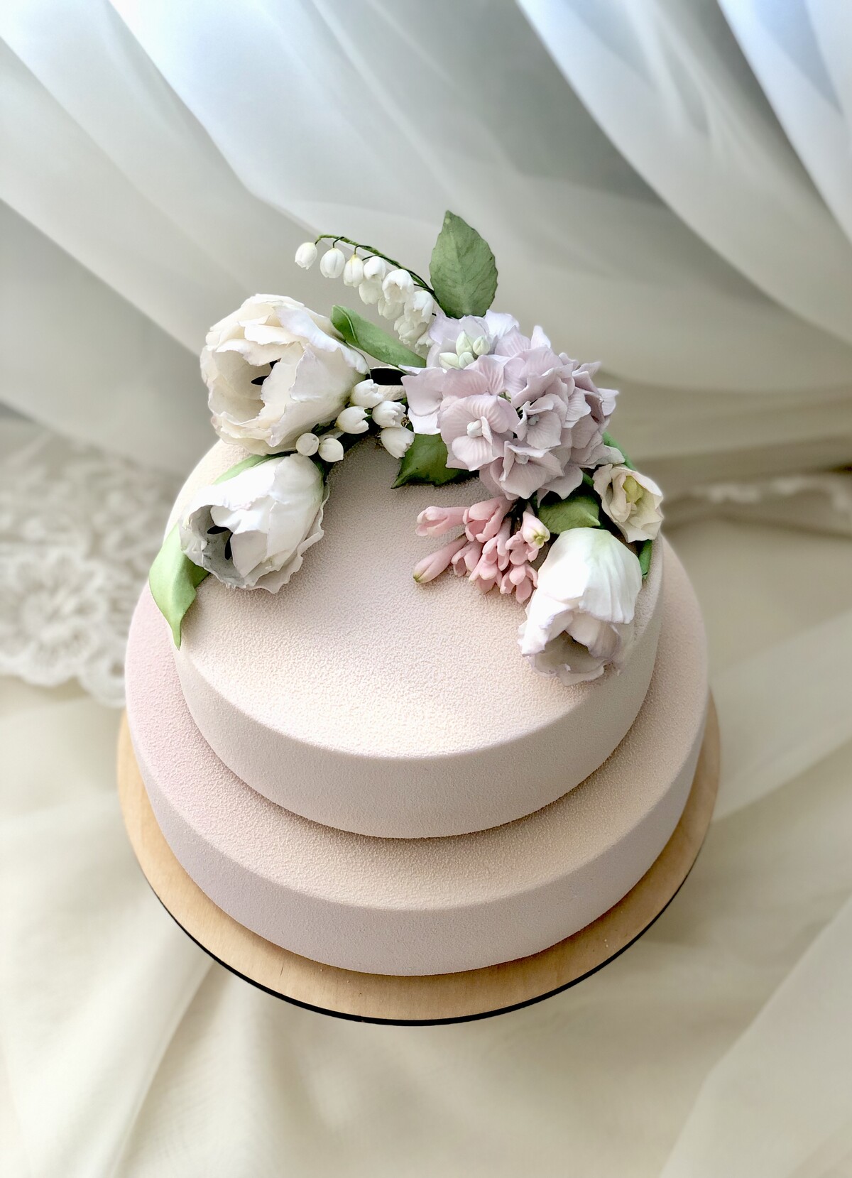 отдельные бутоны можно крепить на любое покрытие торта с помощью декор геля, а букеты с помощью проволоки в стеблях. В видеоуроках есть подробные инструкции.